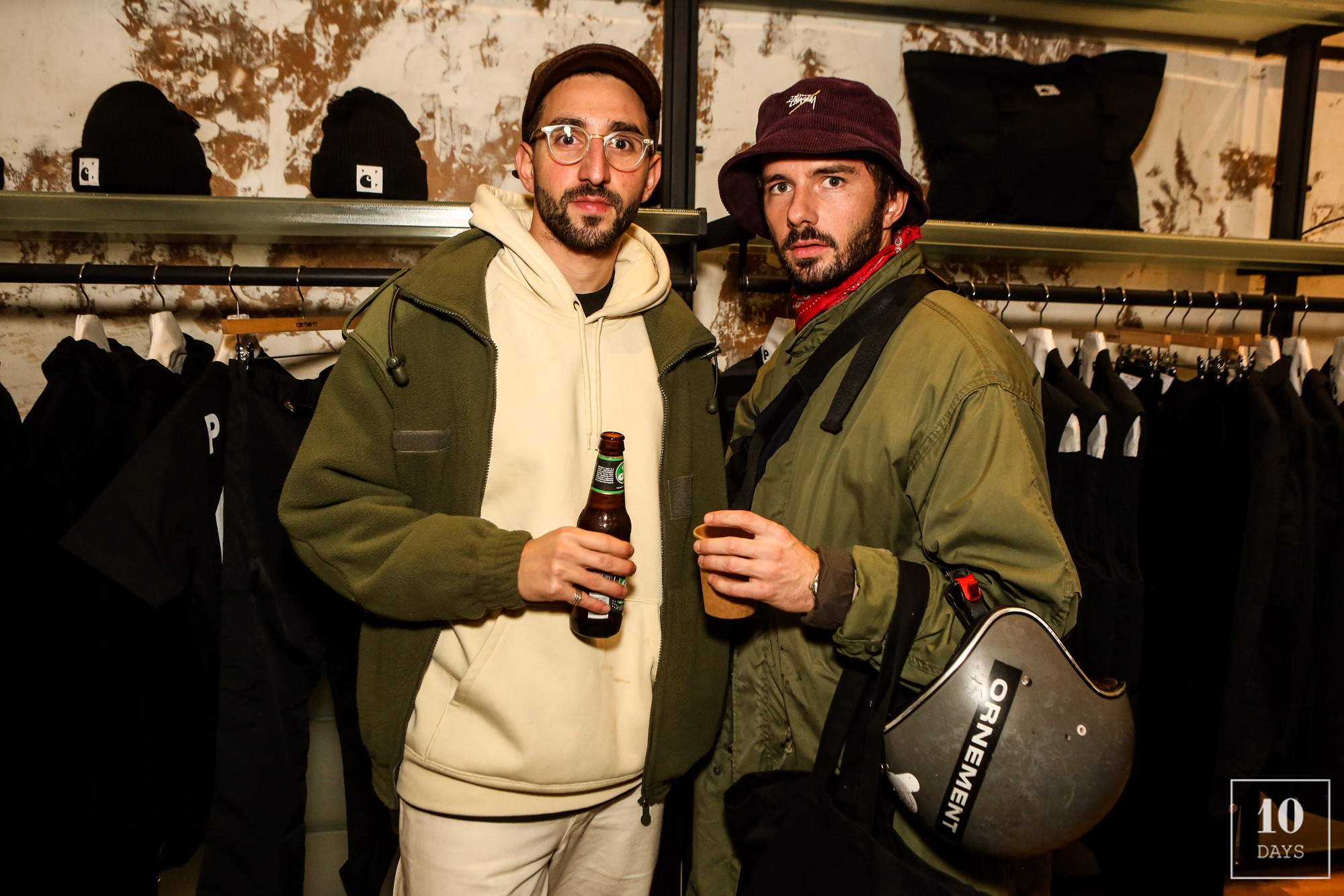 Last week Carhartt WIP & Pop Trading Company celebrated their collaboration at the Carhartt WIP Store Paris Le Marais. The occasion to share a few drinks while listen to a live performance by Nancy Acid. The collection is available since  October 26th, at selected Carhartt WIP stores, retailers and online at carhartt-wip.com