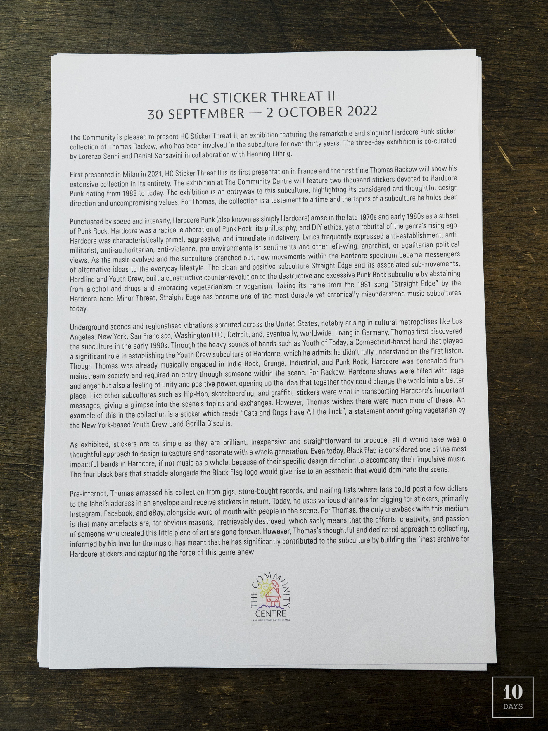 [October-02-2022]HC Sticker Threat II – VERNISSAGE AND LISTENING PARTY at THE COMMUNITY