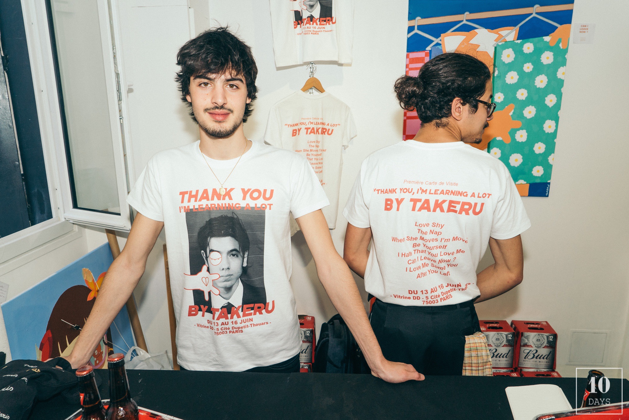 Takeru’s first solo show, called “Thank You I’m Learning a Lot” A retrospective exhibition on his friendly relations, love, or his personality. The omnipresent cat in his paintings is a stylized representation of his discreet and solitary personality. To discover in the space DD from June 13 to 16, 5 Cité Dupetit-Thouars in the 3rd arrondissement of Paris.