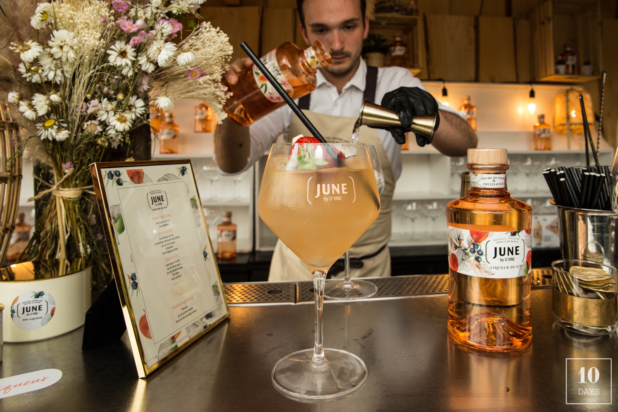 [June-12-2019]Last week, the Maison Villevert group was celebrating the launching of its new brand June gin liqueur on the rooftop of the recently open Mademoiselle Mouche. June is the story of the meeting between the french exceptional gin, G’Vine, and the summer icon fruit: the wild peach. The perfect mix between a premium gin create in Cognac from French grappes, and the delicate fruit ripe picked. This mix is June, a sophisticated gluten free gin liquor. An ideal creation for a fresh summer break brunch, picnic or on Parisian terrasse with friends.